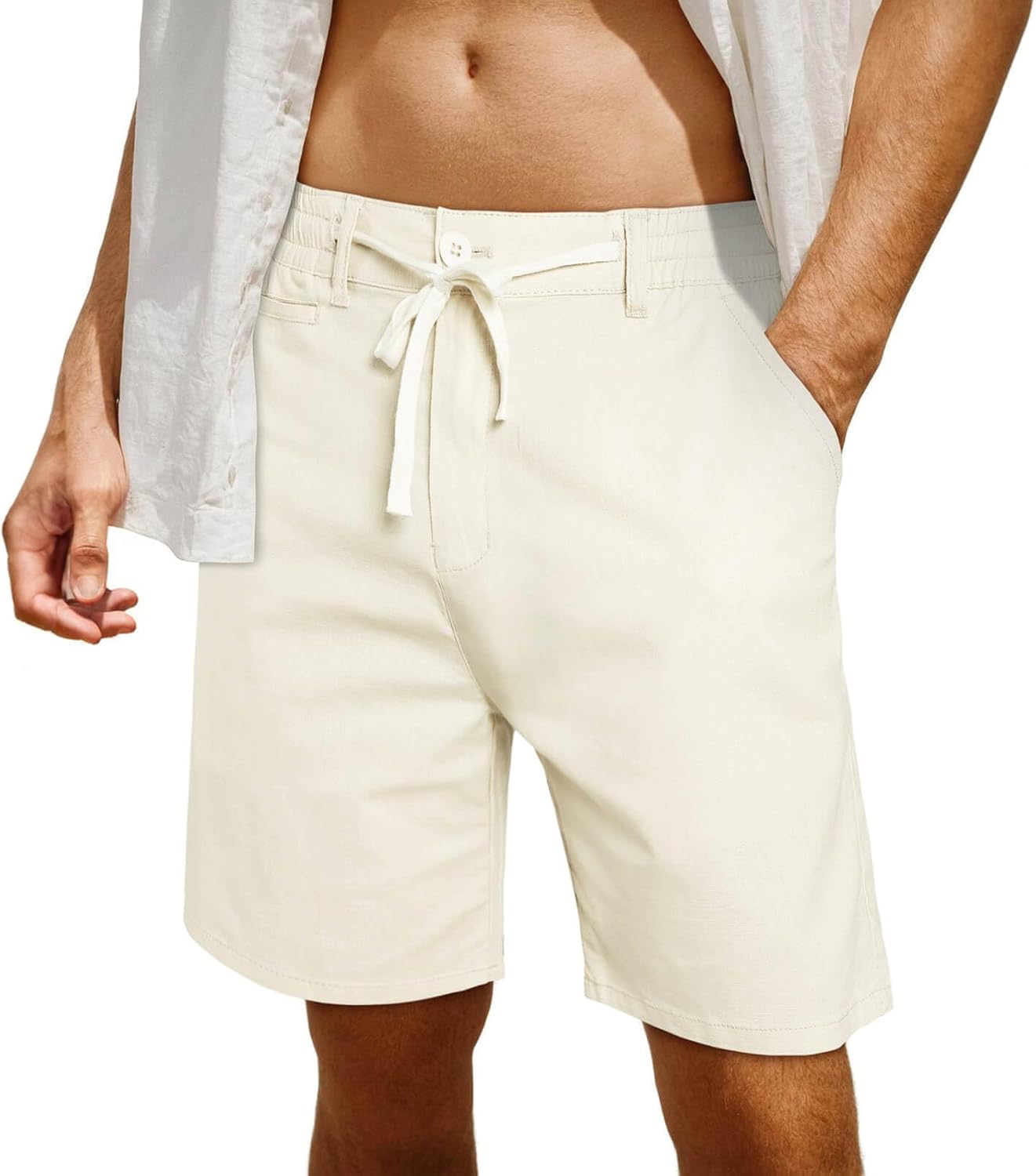 Linen Shorts for Men Casual Shorts with Pockets Drawstring Linen Beach Shorts Summer Shorts Big Cotton Shorts